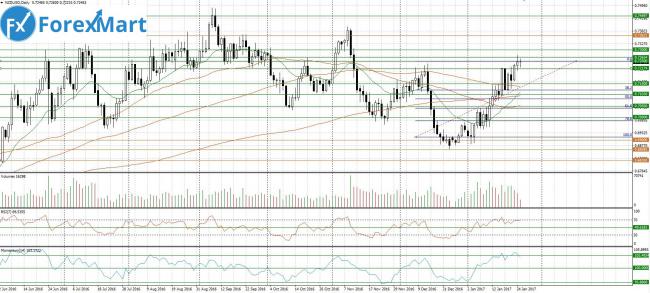 Валютная пара новозеландский доллар/доллар США по итогам вчерашних торгов сформировала свечной паттерн “доджи” в области локальных максимумов, возле торгового уровня 0.7250. Пара по-прежнему находится на границе линии перекупленности, но продолжает движение в рамках восходящего тренда на фоне ослабления американского доллара в связи с опасениями инвесторов за будущее валюты, а также высказываний о том, что США сейчас не нуждается в сильном долларе. Таким образом в ближайшее время мы можем увидеть тест уровня 0.7300. Сегодня опубликуют статистику по Новой Зеландии, а ночью выступит председатель резервного банка страны. Сильная линия поддержки в случае повышенной волатильности находится на уровне 0.7150.