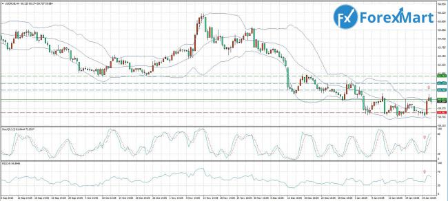 Как и ожидалось, пара резко рванула вверх после обвала рубля в результате заявления Минфина о начале покупки и продажи иностранной валюты на российском рынке. Эти меры будут приняты в целях снижения зависимости рубля от движений котировок нефти. Предположительная сумма аукционов составляет $1 млрд в месяц. Резкое восходящее движение пары USD/RUB может увеличить стоимость доллара до 61,70 рубля. Таких показателей пара не демонстрировала с начала декабря прошлого года.